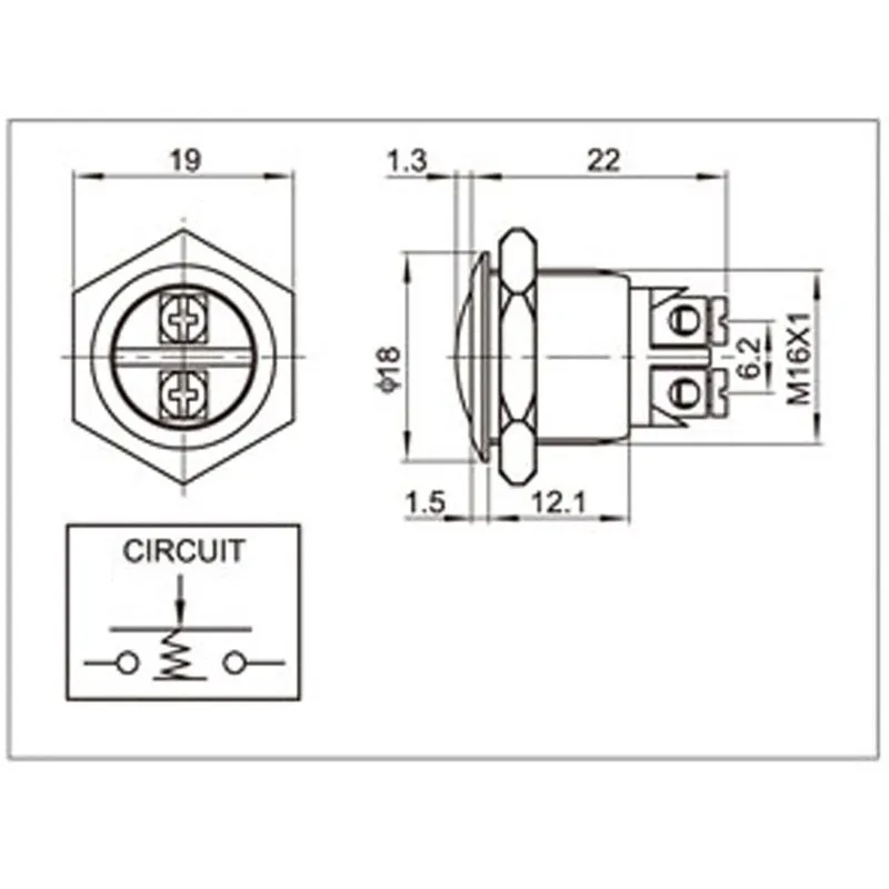 Кнопка антивандальная Ø16 Б/Фикс (2с винт) (ON)-OFF выпуклая (A16-A3) REXANT (в упак. 1шт.)