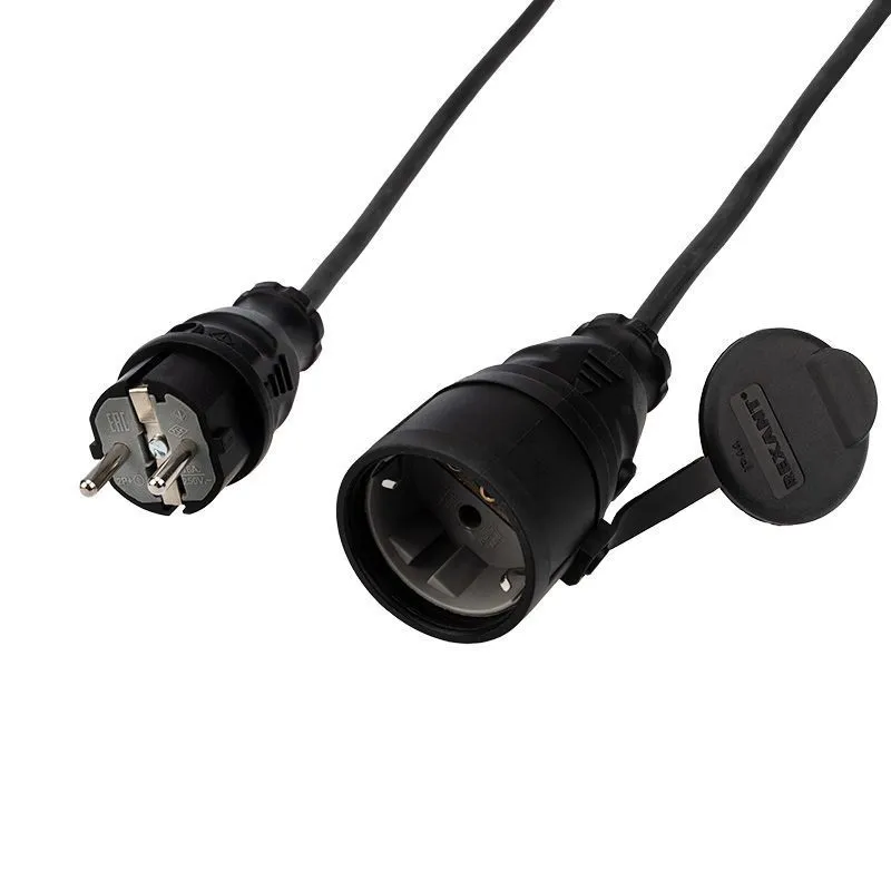 Удлинитель-шнур REXANT ПВС 3х0.75, 10 м, с/з, 6 А, 1300 Вт, IP44, черный (Сделано в России)