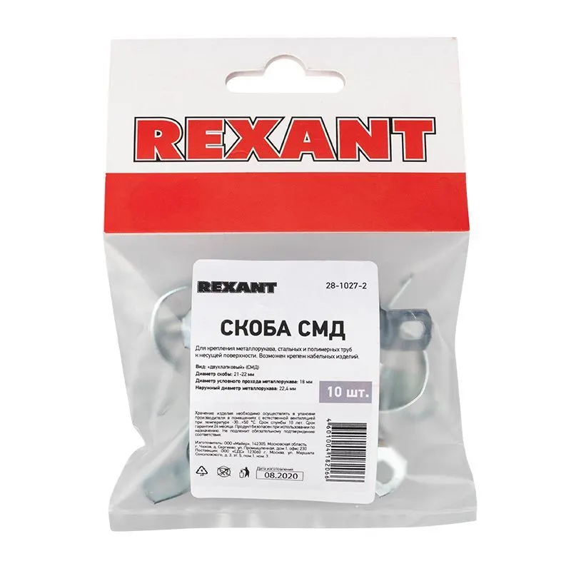 Скоба СМД 21-22 двухлапковая для металлорукава ø 18 мм REXANT
