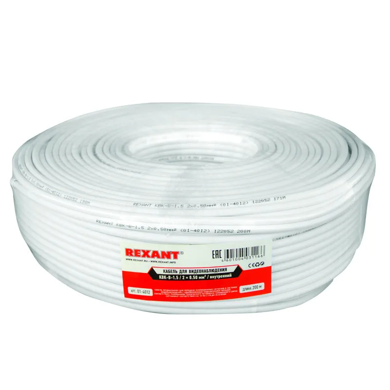 Кабель КВК-В-2+2x0,75 мм² (Cu/Cu) белый, 200 м, REXANT