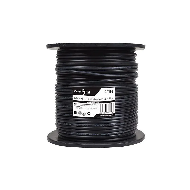 Кабель КВК-П-2 +2x0,50 мм² (Cu/Cu) черный, 200 м, PROconnect