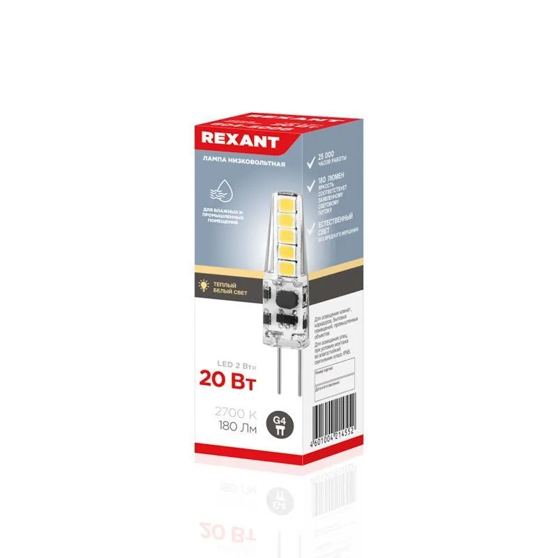 Лампа светодиодная капсульного типа JC-SILICON G4 12В 2Вт 2700K теплый свет (силикон) REXANT