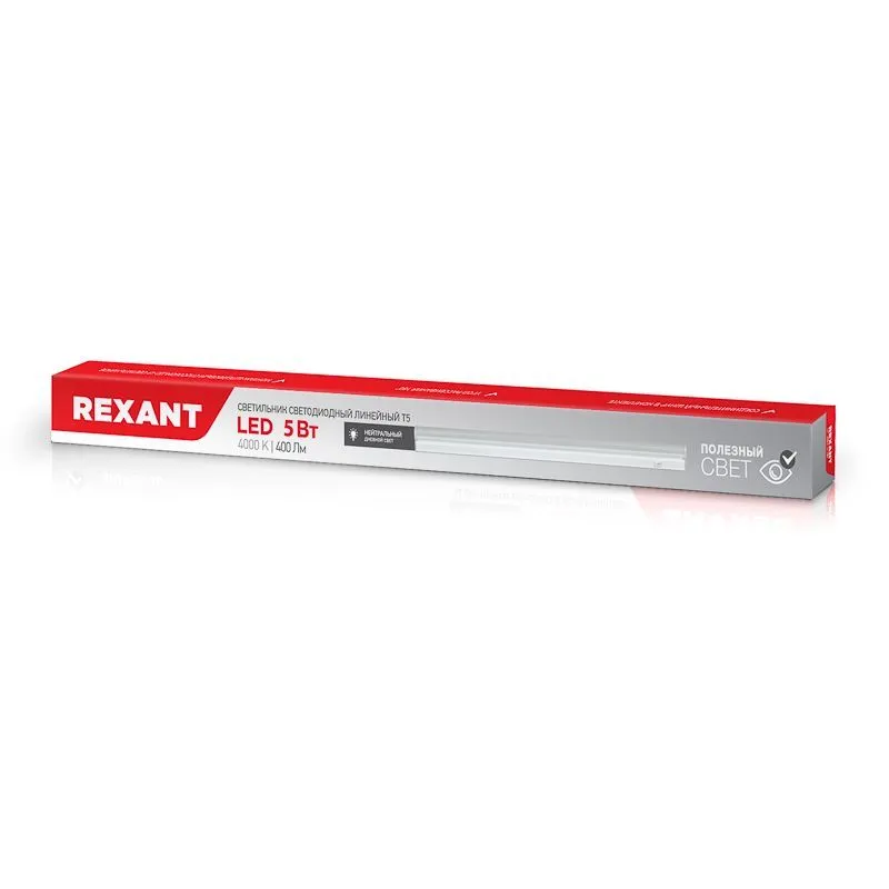 Светильник линейный T5 IP20 5Вт 4000K нейтральный свет 315мм с выключателем и соединителем REXANT