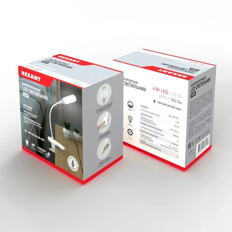 Светильник LED настольный заряжаемый Click 4 Вт 4000 К диммируемый 3 ступени на прищепке REXANT