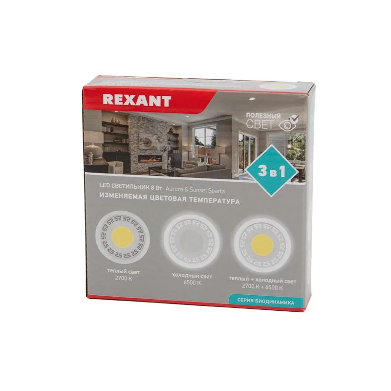 Светильник светодиодный накладной REXANT AuroraSunset Wave с изменяемой цветовой температурой и регулируемой мощностью 4W+4W, 2700-6500 К LED