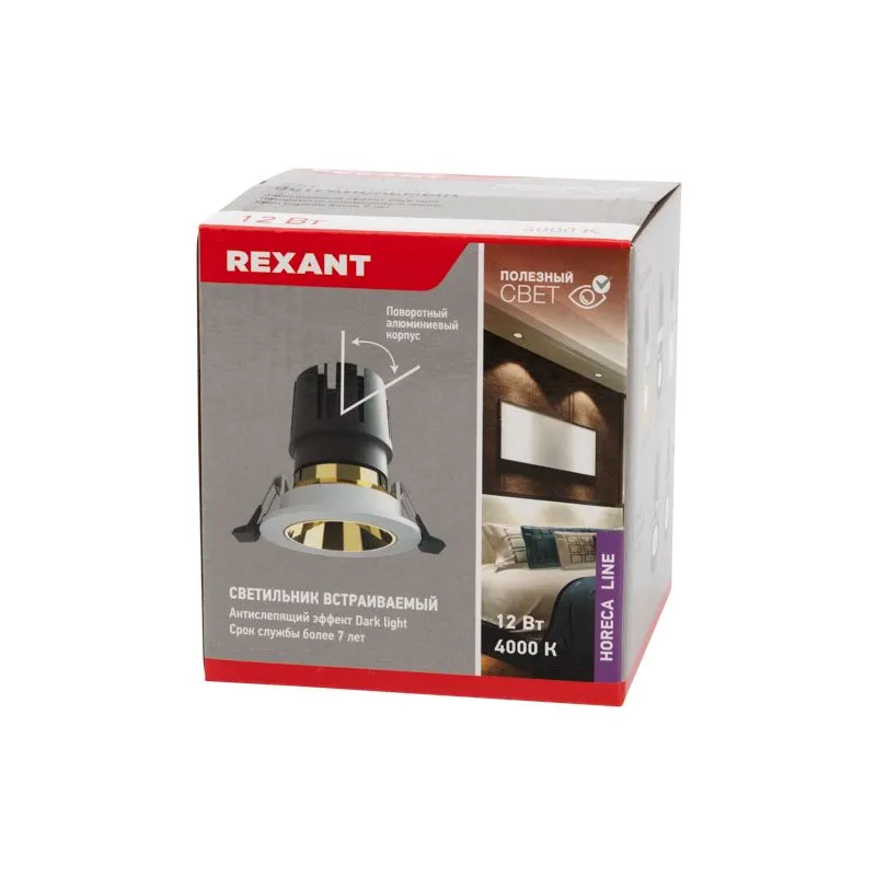 Светильник встраиваемый поворотный REXANT Horeca Dark Light с антиослепляющим эффектом 12 Вт 4000 К Ring LED WHITE