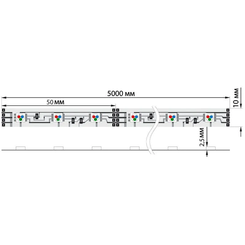 LED лента 5м открытая, 10 мм, IP23, SMD 5050, 60 LED/m, 12 V, цвет свечения RGB LAMPER