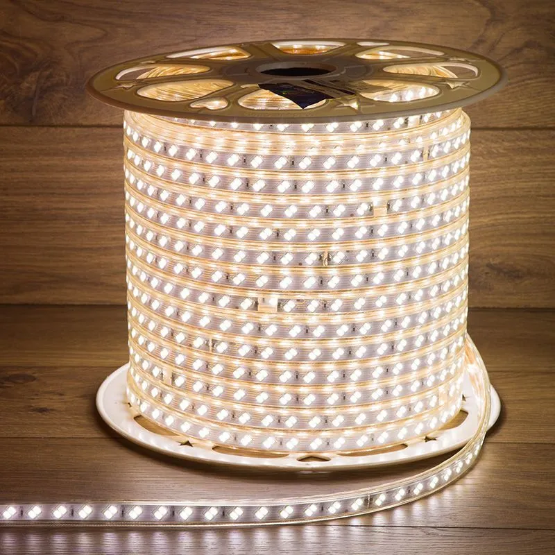 27 товаров LED лента 220 В, 10х7 мм, IP67, SMD 2835, 60 LED/m, цвет свечения теплый белый, бухта 100 м