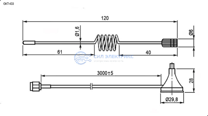 Антенна GSM GKT-433-3B3 (3m RG174) SMA P