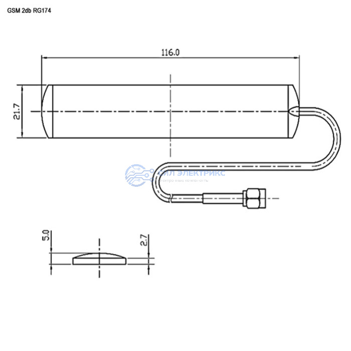 Антенна GSM GSM 2db RG174 3m SMA-P