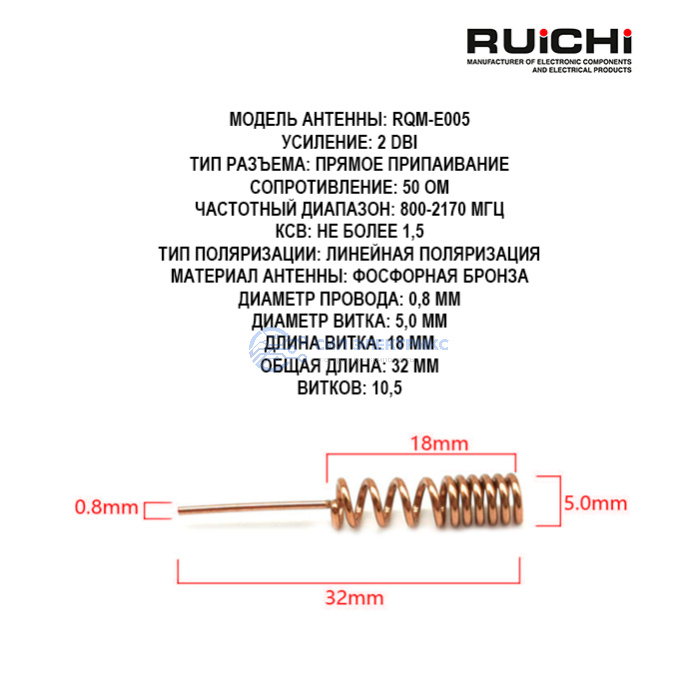 Антенна GSM RUICHI 3 дБ, 900 МГц, разъём SMA-P угловой, белая