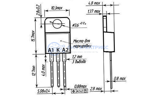 Диод низковольтный КД268АС, 15 А, 400 В, корпус TO-220