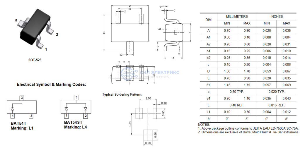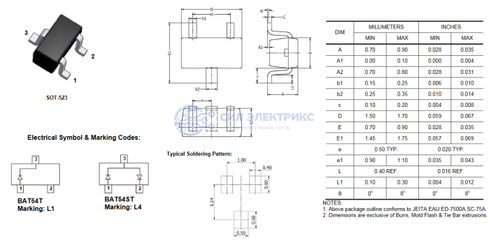 Диод Шоттки BAT54T, 0,2 А, 30 В, корпус SOT-23