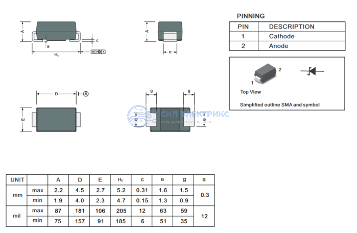 Диод Шоттки SSL16A рассчитан на ток до 1А и обратное напряжение до 60В. Устройство обладает высокой надежностью и выполнено в корпусе SMA (SMD). Высокая скорость переключения делает его идеальным для работы в высокочастотных системах малой и средней мощности.