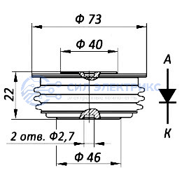 Силовой диод В800-16 + охл. О-343, 800А, 1600В, с охлаждением