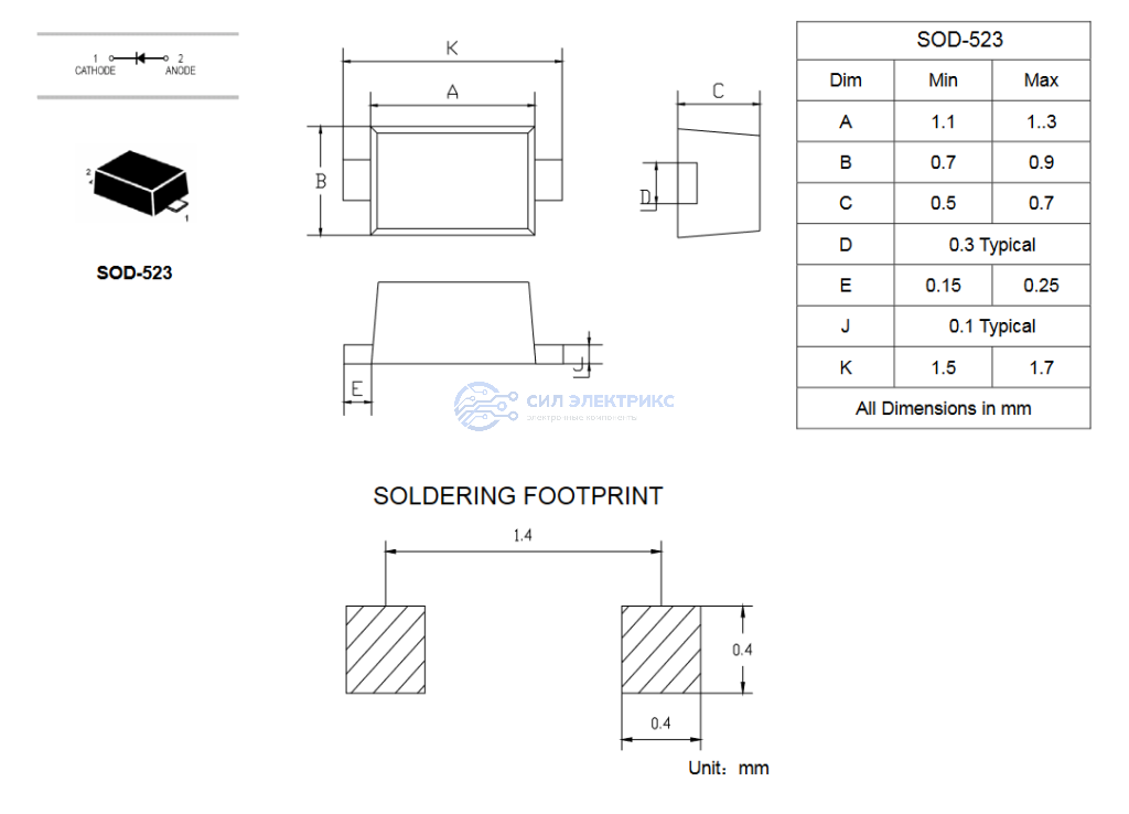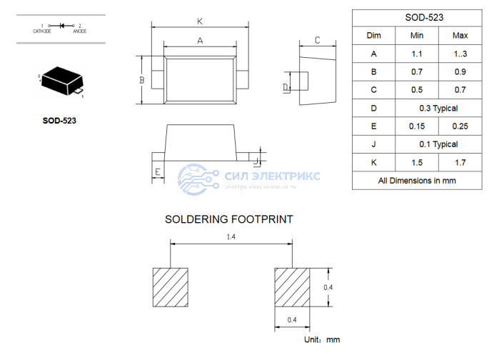Диод BAS16X выполнен в корпусе SOD-323, что делает его компактным и удобным для использования в схемах с высокой плотностью монтажа. Он сохраняет характеристики стандартного BAS16, включая ток до 0,2 А и напряжение до 100 В.