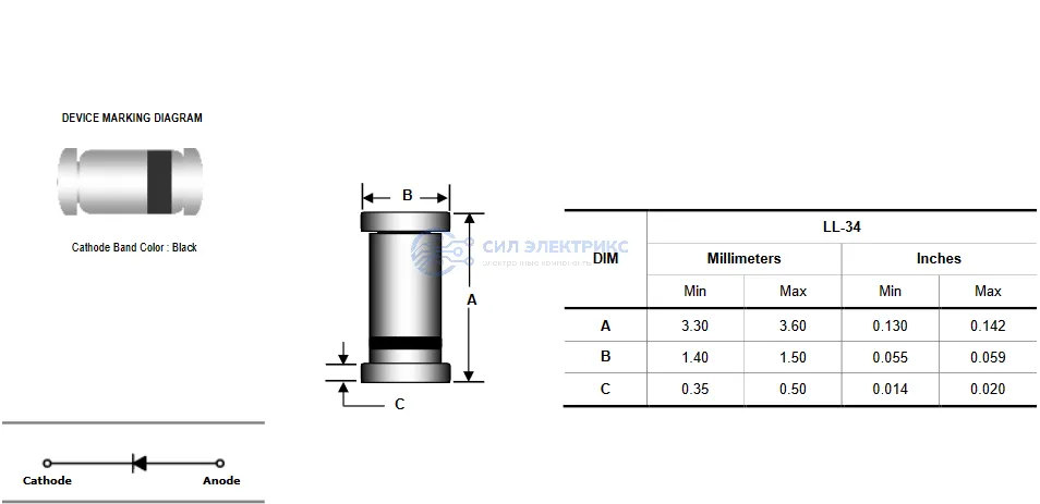 Диод LL4448 представляет собой компактный высокоскоростной переключающий диод, выполненный в корпусе MiniMELF. Он сочетает в себе низкий обратный ток и высокую скорость переключения, что делает его универсальным компонентом для большинства приложений.