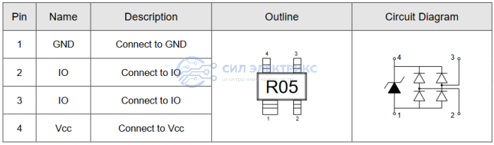 - Защита от ESD в устройствах с рабочим напряжением до 5.0 В.