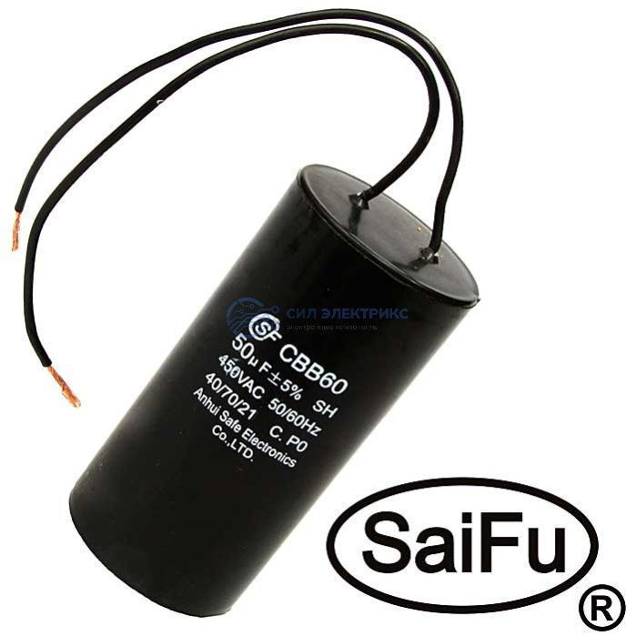 Пусковой конденсатор CBB60, 50 мкФ, 450 В, выводы с проводами, бренд SAIFU