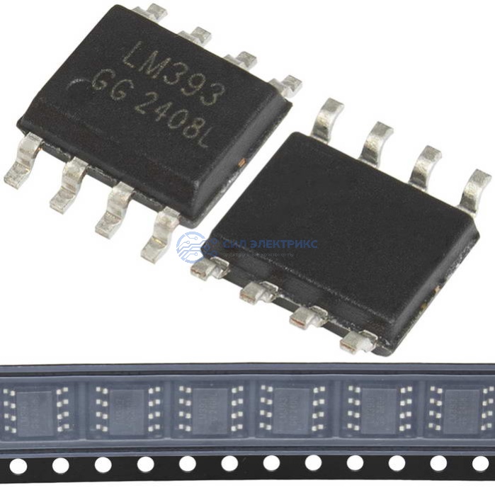 Компаратор LM393, 1,3 мкс, 2–36 В, корпус SOIC-8