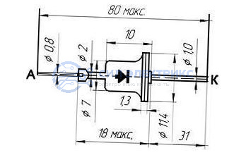 Динистор КН102Г, 300 В, 0.2 А, корпус металлостеклянный