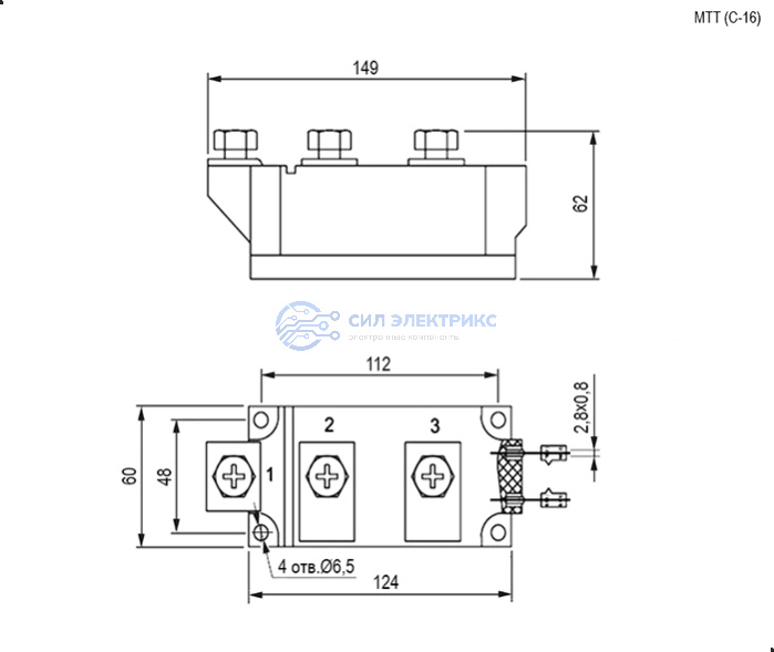 Модуль тиристорный МТТ630-16 (аналог), 1600 В, 630 А, корпус силовой модуль