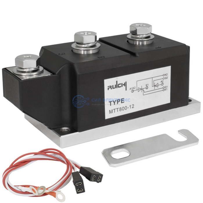 Модуль тиристорный МТТ800-12 – это высокомощное полупроводниковое устройство, предназначенное для работы в цепях с напряжением 1200 В и током 800 А. Отличается высокой стойкостью к перегрузкам и стабильностью рабочих характеристик.