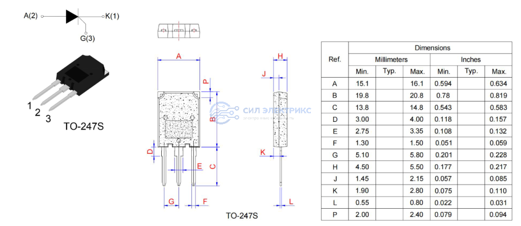 Низковольтный тиристор BT148-600R, 600 В, 8 А, корпус TO-220