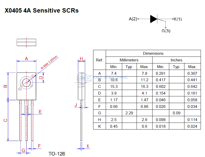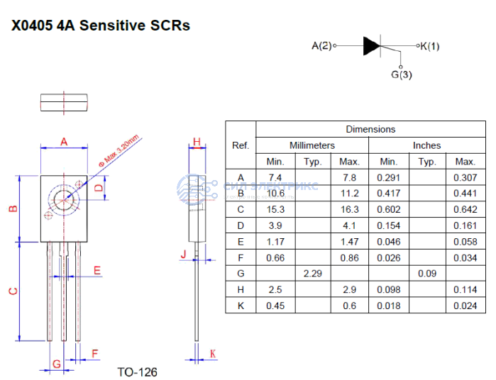 Низковольтный тиристор X0405MQ, 600 В, 4 А, корпус TO-92