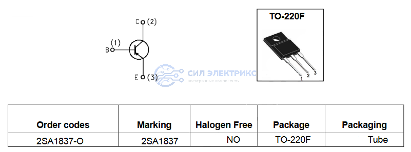 Транзистор биполярный PNP; -230 В; -1 А; hFE 100…270; TO-220F