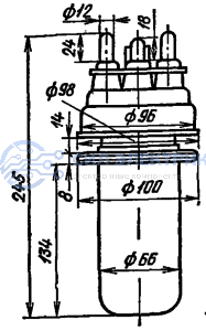 отсечки тока анода при Ua = 4,5 кВ; Ia = 0,5 А: ≤600 В