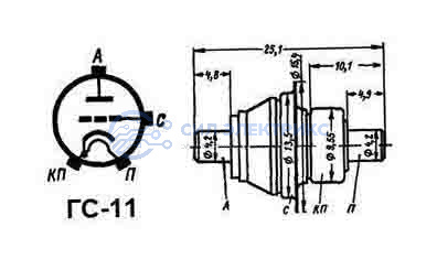Генераторная лампа ГС-11 — электровакуумная лампа СВЧ-диапазона с водяным охлаждением, предназначенная для работы в мощных радиочастотных установках. Отличается высокой надежностью и стабильностью параметров при длительной эксплуатации в импульсном режиме.