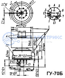 ГУ-70Б — это мощная радиочастотная лампа с воздушным анодным охлаждением, предназначенная для работы в усилителях мощности и генераторах ВЧ диапазона до 30 МГц. Она оснащена керамическим корпусом, обеспечивающим термостойкость и долговечность, а также позволяет работать в непрерывном и импульсном режимах. Лампа отличается стабильной работой при высоких анодных напряжениях и большом токе.