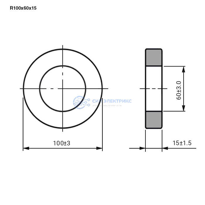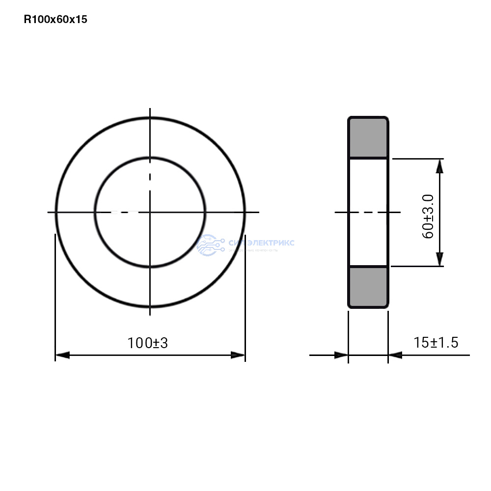 внешний (А) - 100±1 ; внутренний (B) - 60±0.3