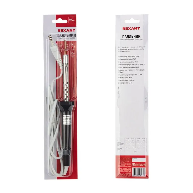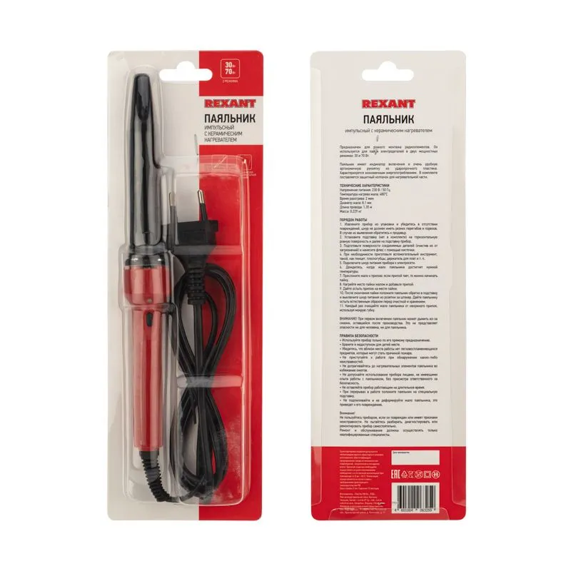 Паяльник с керам. нагревателем, серия Japan type, 60Вт, 230В, запасное жало, блистер REXANT