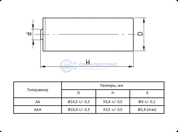 зарядки/ разряда -0,1C (60 мА)/ 0,2С (120 мА)