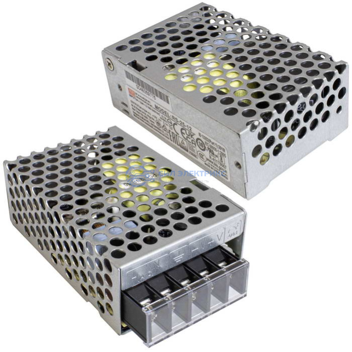Блок питания RS-25-12-MW — это импульсный источник питания с выходным напряжением 12 В и мощностью 25 Вт. Он предназначен для питания различных устройств, таких как датчики, системы видеонаблюдения, освещительные установки и другие компоненты, требующие стабильного питания. RS-25-12-MW обеспечивает эффективную работу с минимальными потерями энергии и встроенной защитой от короткого замыкания, перегрузок и перегрева. Его компактные размеры позволяют использовать его в устройствах с ограниченным пространством, при этом сохраняется высокая эффективность и надежность работы.