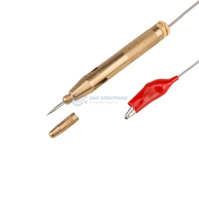 Автотестер универсальный металлический REXANT предназначен для быстрой и эффективной диагностики электрооборудования автомобилей от 6 до 24 В. Позволяет выявить замыкание и обрыв проводки или проверить предохранители, лампочки и диоды. Тестер имеет накручивающийся защитный колпачок. Корпус выполнен из металла и снабжен проводом с зажимом типа «крокодил» и световым индикатором.