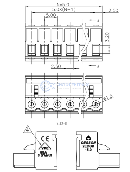 штепсельный клеммник (розетка) серии 2EDGK, прямой