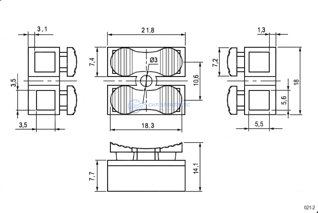 Самозажимная клемма 021-2, 2-х проводное соединение, 10 А, 2.5 мм2, PA66