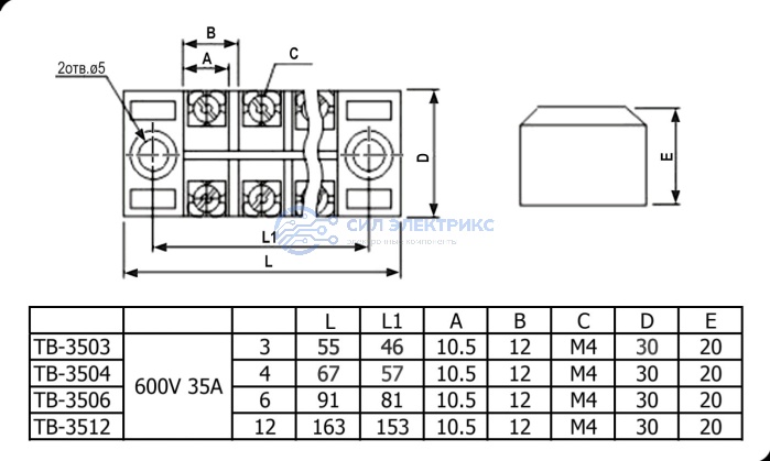 - Используется в промышленных и энергетических системах для соединений с номинальным током 35 А и напряжением 600 В.