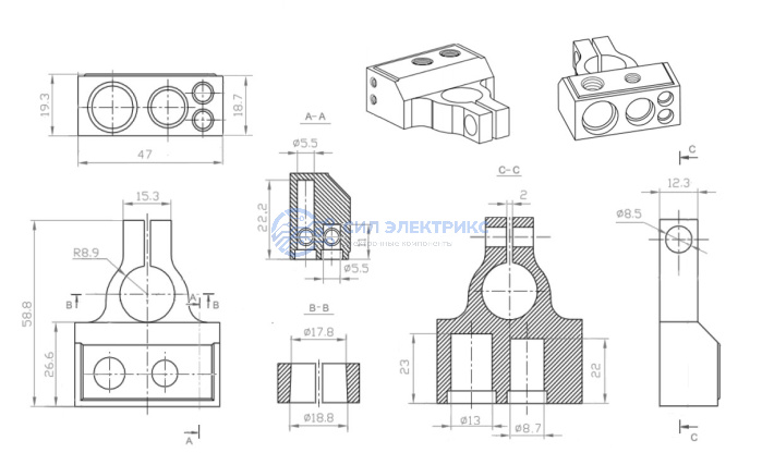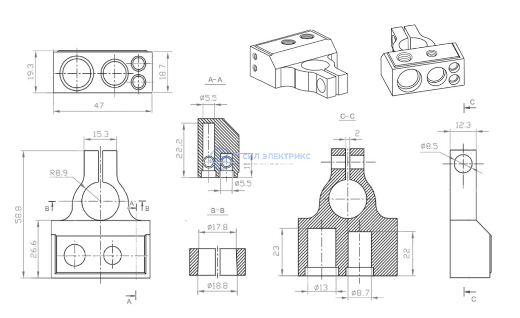 2x (Ф5,5); Ф 8,7; Ф13 мм