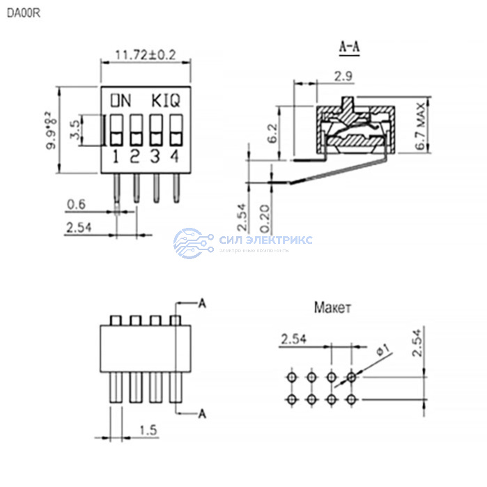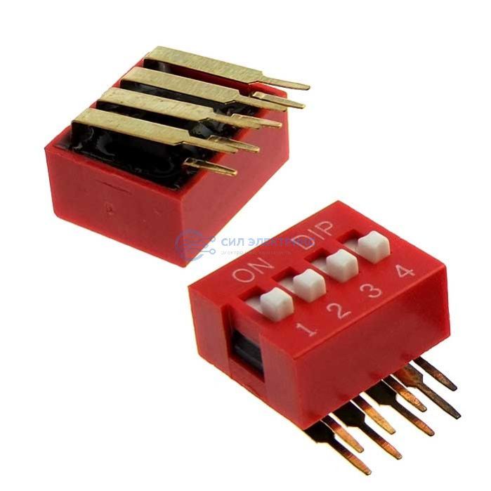Переключатель DIP DA04R, 4 переключателя, стандартный, пластиковый корпус, 2.54 мм шаг