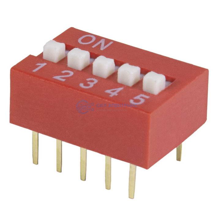 Переключатель SWD1-5 (DS-05), Вдм1-5, 5 переключателей, стандартный, пластиковый корпус, 2.54 мм шаг