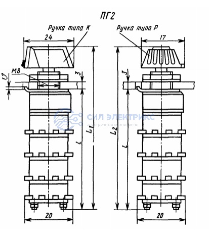 Переключатель ПГ2-5 12П1Н (200*г), 12 позиций, номинальное напряжение 250 В, ток 5 А