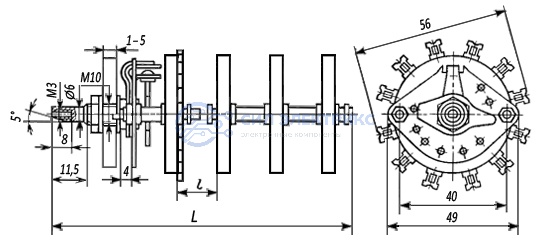 Переключатель ПГК 2П 16Н‑К13, 2 позиции, номинальное напряжение 250 В, ток 5 А