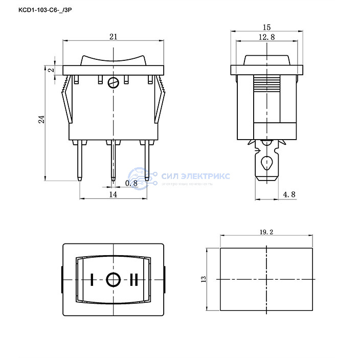 KCD1-103-C6-R/3P on-off-on — это клавишный переключатель с тремя контактами (3P) и функцией переключения между тремя состояниями: включено (on), выключено (off) и промежуточное состояние (on). Этот тип переключателя часто используется в промышленном и бытовом оборудовании, где необходимо управление несколькими состояниями, что позволяет выполнять дополнительные функции или регулировки.
