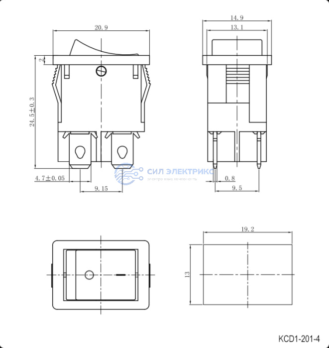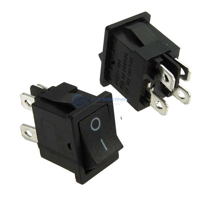 Клавишный переключатель KCD1-201-4-C3-B/4P, on-off, черный, номинальное напряжение 250 В, ток 6 А