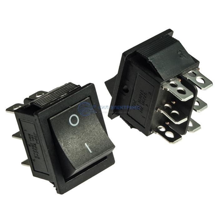 Клавишный переключатель KCD4-202-C3-B/6P, on-on, черный, номинальное напряжение 250 В, ток 6 А