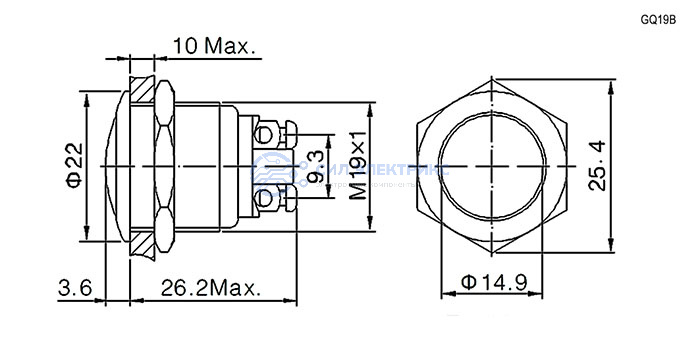 Кнопка антивандальная GQ19B-10/N off-(on)